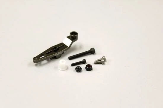 This is an optional Kyosho MP9 25 Tooth Aluminum Throttle Servo Horn. This aluminum servo horn is compatible with all MP9 series vehicles and is a great upgrade for your throttle/brake linkage assembly. The horn is stepped on the brake side, eliminating the collars that are used to raise the linkage rods. Additionally, the horn features a clamping design for added security, a unique anodized finish and a laser etched Kyosho logo.