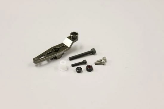 This is an optional Kyosho MP9 23 Tooth Aluminum Throttle Servo Horn. This aluminum servo horn is compatible with all MP9 series vehicles and is a great upgrade for your throttle/brake linkage assembly. The horn is stepped on the brake side, eliminating the collars that are used to raise the linkage rods. Additionally, the horn features a clamping design for added security, a unique anodized finish and a laser etched Kyosho logo.
