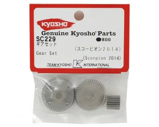 This is a replacement Kyosho Scorpion 2014 Gear Set. Package includes a differential gear, slipper gear, and upper transmission gear.