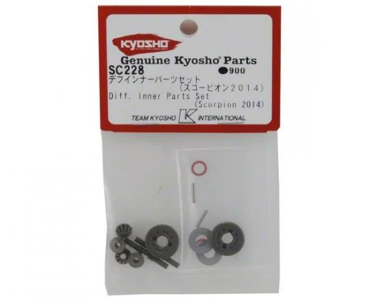 This is a replacement Kyosho Scorpion 2014 Differential Inner Parts Set. Package includes the sun gears, planetary gears, gear shafts, pins, washers and o-rings.