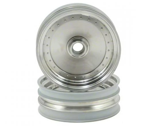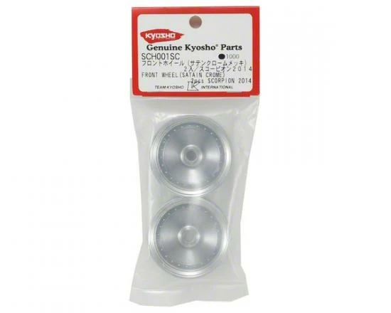 This is a pack of two replacement Kyosho Scorpion 2014 Satin Chrome Front Wheels.
