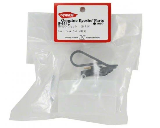 This is a replacement Kyosho MP9 fuel tank set. This is the updated IF444C fuel tank set, and is compatible with the entire MP9 family of vehicles. This part makes replacing the fuel tank fast and easy. This fuel tank set comes complete with fuel tank, four rubber grommets, and a factory installed pull handle.