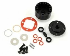 This is a replacement Kyosho Gear Differential Case Set. This is used with the Kyosho LAW50 gear diff set. Package includes diff case halves, bushings, o-rings, gasket, shims, pins and hardware.