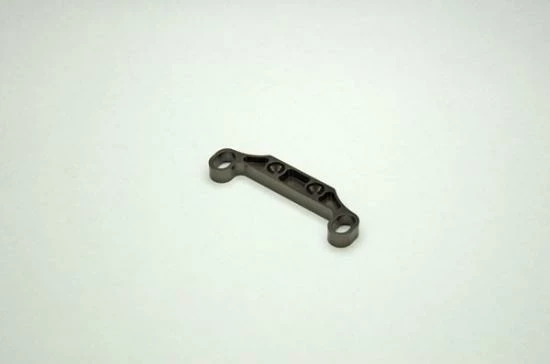 This is a optional Kyosho CNC 7075 Aluminum Front Upper Arm Holder, intended for use with the Kyosho MP9 1/8 buggy. This gunmetal anodized part uses the stock inserts for adjustment, and will increase strength and rigidity compared to the stock plastic part, while remaining as light as possible.