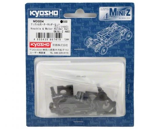 This is a replacement Kyosho Knuckle & Motor Holder Set, and is intended for use with the Kyosho Mini-Z MA-010 and MA-015 AWD chassis.