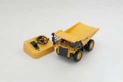 Komatsu is recognized around the world for its heavy-duty construction machinery, and Kyosho is proud to recreate the KOMATSU HD785-7 first released in February 2010, in this high-grade version. The previous model featured standard FWD and REV movement, however this HG model introduces High and Low gears for even more realistic function in addition to standard steering control and UP-DOWN control of the vessel (loading platform). The special controller with steering and lever recreates the sense of power unique to dump truck driving characteristics. The pre-painted body is immaculately finished down to fine details, making it suitable even as a display model. Three infra-red channels (A, B, & C) allow up to 3 trucks to be operated at the same time. Simply purchase standard alkaline batteries for the chassis and the controller and you can enjoy driving this fully assembled model, complete with pre-painted body. Recreate your own construction site by working the dump truck together with the 1/50 scale KOMATSU PC1250-8 (HG) hydraulic excavator of the same IRC construction machinery series.