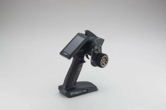 The Syncro Touch FHS/FHSS 2.4GHz transmitter is an ideal upgrade to the KT-19 included with the MR-03/MA-020S/Overland Sports, Mini-Z Sports Series, and Mini-Z Moto Racer models. In addition to improved response and control precision, the other outstanding feature of the Syncro Touch KT-432PT is the color touch panel that creates a similar control feel to a smartphone. Like other mid-range transmitters, the Syncro Touch menu is rich with setting options from end-point, exponential, mixing and model memory (20 models), but also displays these in a user-friendly graphical and illustrated format like a smartphone. Switch the power ON/OFF and hear the start up sound of a racing car from the internal speaker. The Syncro Touch KT-432PT not only realizes an evolution in performance, but also takes the visual and user experience to a whole new level. Kyosho’s guiding philosophy of “serious about having fun” is embodied in this next generation transmitter by enhancing the enjoyment of operating a transmitter and driving R/C cars at the same time.