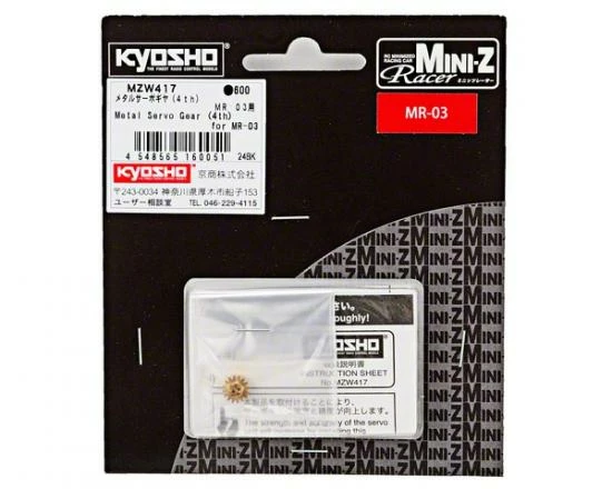 This is an optional Kyosho Metal Servo Gear, and is intended for use with the Kyosho Mini-Z MR-03. This is a direct replacement for the 4th gear in the steering servo, and will improve the durability of the servo.Â