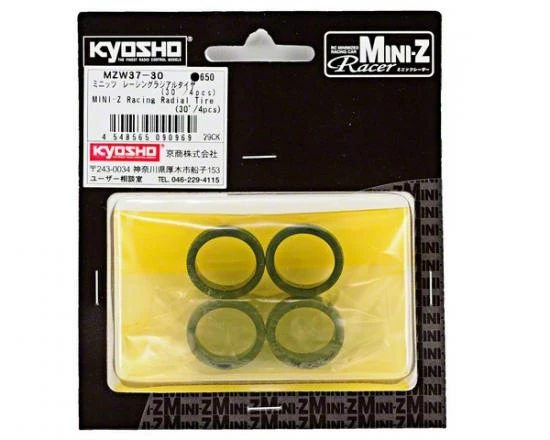 This is a set of four Kyosho 8.5mm Racing Radial Tires in 30 shore compound, and are intended for use with Kyosho Mini-Z models that use 8.5mm wide wheels.