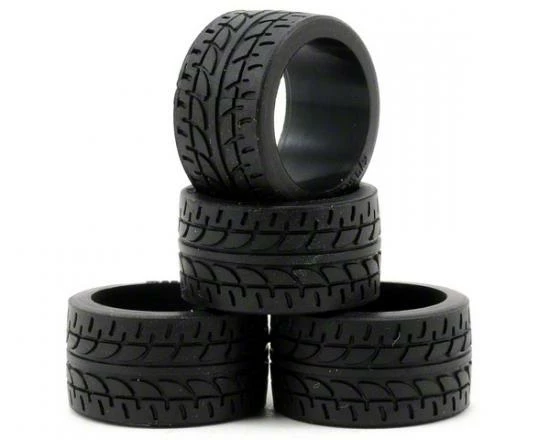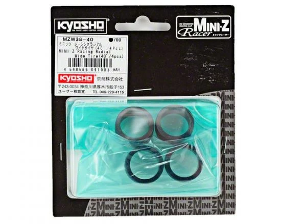 This is a set of four Kyosho 11mm Wide Racing Radial Tires in 40 shore compound, and are intended for use with Kyosho Mini-Z models that use 11mm wide wheels.