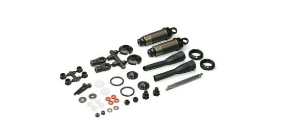 CNC machined aluminum shock set allowing tension adjustments. Includes 2 shocks. Springs and shock oil not included.