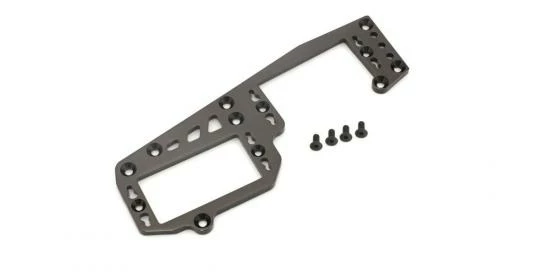 At first glance the radio plate looks similar to the MP9 TKI4, but the MP10 design features a revised servo position and increased strength with 3.0mm thickness, increased from 2.5mm.