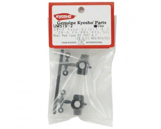 This is a replacement Kyosho 4.7mm Offset “Type B2” Rear Hub Set. These hubs are standard replacement for the RB5 SP2 and Lazer FS2 vehicles. These hubs can be used optional with the Ultima RB6, RB5 SP, RT5, SC, SCR, DB, and Lazer FS vehicles.