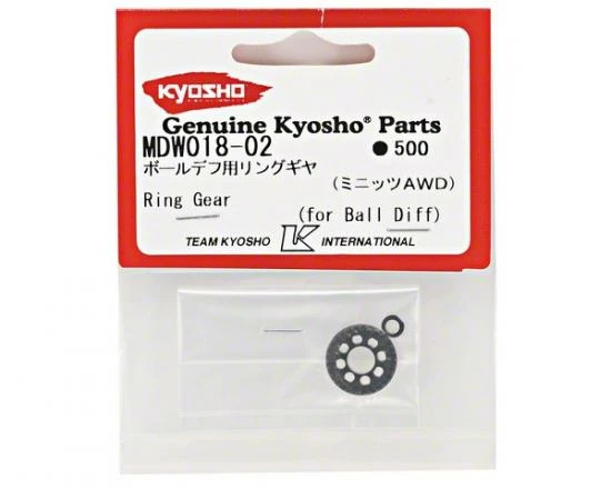 This is a replacement Kyosho Ball Differential Ring Gear, and is intended for use with the Kyosho Mini-Z MA-010 and MA-015 AWD chassis equipped with the optional Kyosho Ball Differential Set (KYOMDW018).