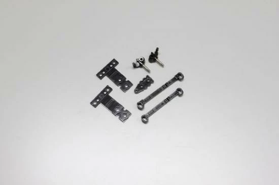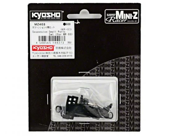 This is a replacement Kyosho Suspension Small Parts Set, and is intended for use with the Kyosho Mini-Z MR-03 chassis. This package includes the front steering knuckles, steering blocks for narrow and wide configurations, as well as long and short t-plates.