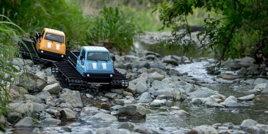 The newest edition to the 1/12 scale electric belt vehicle series further enhances your outdoor experience. Kyosho’s long selling ‘Blizzard’ that has stood the test of time with a legion of loyal fans, has been used as a base for the new ‘Trail King’. Among its many features, a completely new body design creates the retro feel of a hard working machine. In addition to the realistic finish with separate accessory parts, the underbody incorporates a cockpit and always-on front and rear LED lights. A loading platform also provides space for a variety of things to be carried. The Trail King enhances the enjoyment of nostalgic wilderness experiences across a wide variety of scenes with a chassis boasting heavy-duty specifications for smooth and easy travel across any surface including uneven rocky roads and steep gradients. Take control with forward, reverse, left/right and the complete left/right pivot turning capability of a belt vehicle. As the model is fully pre-assembled, the advanced mechanics of the Trail King are ready to be enjoyed straight away. Compatibility with spare and optional parts for the Kyosho ‘Blizzard’ allows you to expand your enjoyment of the snow and sand adventures even further.